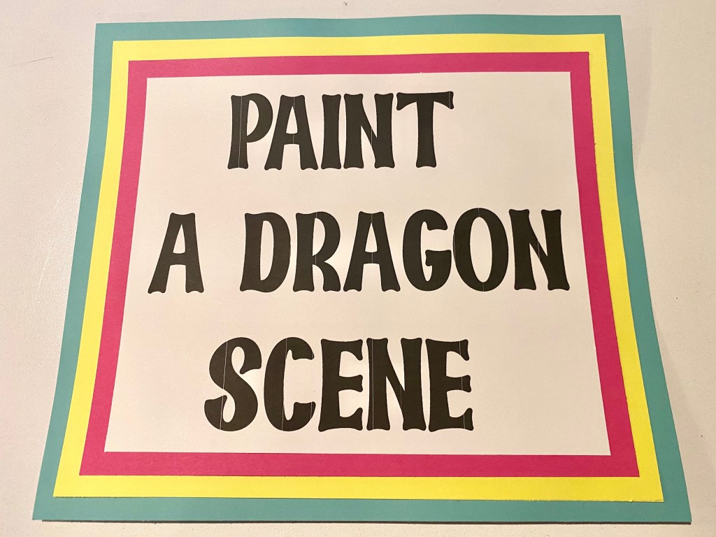 I grabbed a couple of packs of canvases at a great price at Hobby Lobby and added a variety of new colors to my acrylic paint collection. I also invested in some paintbrushes. I cut several different sizes of dragon silhouettes out of cardstock and some castles as well, and I printed out a collection of pictures to use as inspiration. I rolled out a long line of painters paper to save our concrete and then let the kids go for it. Some used the silhouettes and others sketched their own pictures. Most of the party guests were Wings of Fire fans, so they were all happily chatting about what type of dragon they were painting. The only drawback to this project is that I should have planned for less activities or more time because it took a lot longer for them to paint than I anticipated and some brought home 1/2 finished canvases. #CommissionsEarned