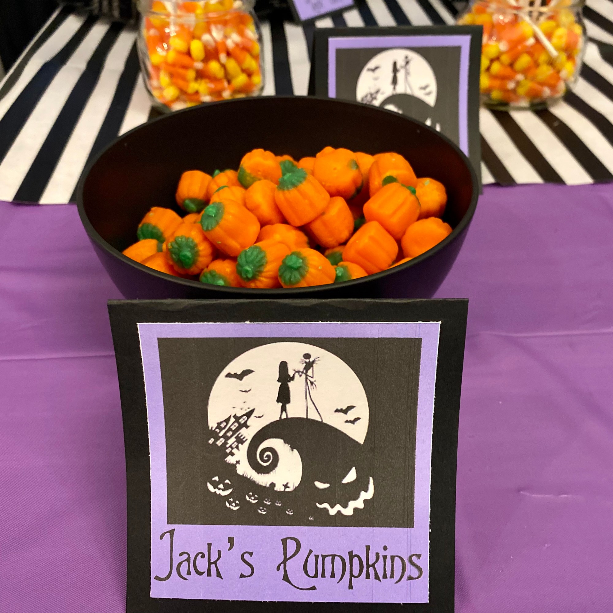 Planning the food for this party was so much fun! Here’s a list of what was on our Nightmare Before Christmas Food Table.