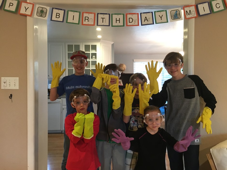 We read up on the proper safety precautions needed when handling dry ice, so we were well prepared to host a party of this kind. In the birthday invitations, I asked that a parent be present to help supervise their own child/children and asked the kids to come dressed in long sleeves, long pants, and close toes shoes. We provided gloves and safety goggles for each person handling the dry ice and when the kids arrived we were all ready to go. #CommissionsEarned