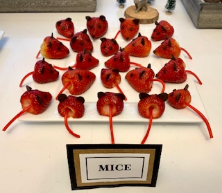 Warriors eat their food from a “Fresh Kill Pile.” Our food table was inspired by things the Warrior cats would catch and devour. I included signs for the birds, bones, fish, rabbits, and mice. The birds were chocolate dipped pretzels with an M&M nose, mini chocolate chip ears, and Wilton’s candy eyeballs. Slide mini marshmallows on the end of stick pretzels and then dip in white candy melts to create “bones.” For the mice we used strawberries, twizzlers candy, mini chocolate chips, and small circles of chocolate candy melts (left over from the birds) for the ears. We used blue jello and Swedish fish candies, as well as Goldfish crackers because we all know how much cats love fish, and our rabbits were Annie’s Cheddar Bunnies crackers. Since the party was at dinnertime I made some PB&J sandwiches cut in the shape of cats. in the Warriors books, there is a sacred place on the hills called the “Moonpool,” so we replaced water labels with ones reading “Moonpool Water” and surrounded them with rocks to resemble a pond. #CommissionsEarned