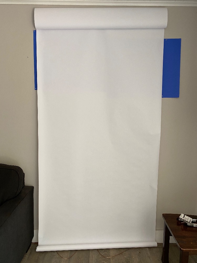 I purchased the board at Lowe’s and painted it white. Then I used my Mooka mini projector to trace the letters. I used the free font “MOANAS” and stretched it to make the letters longer so that they fit the length and width of the board. The Mooka mini projector makes projects like this so easy! Within a few minutes, I had the letters traced out in pencil and ready to go.