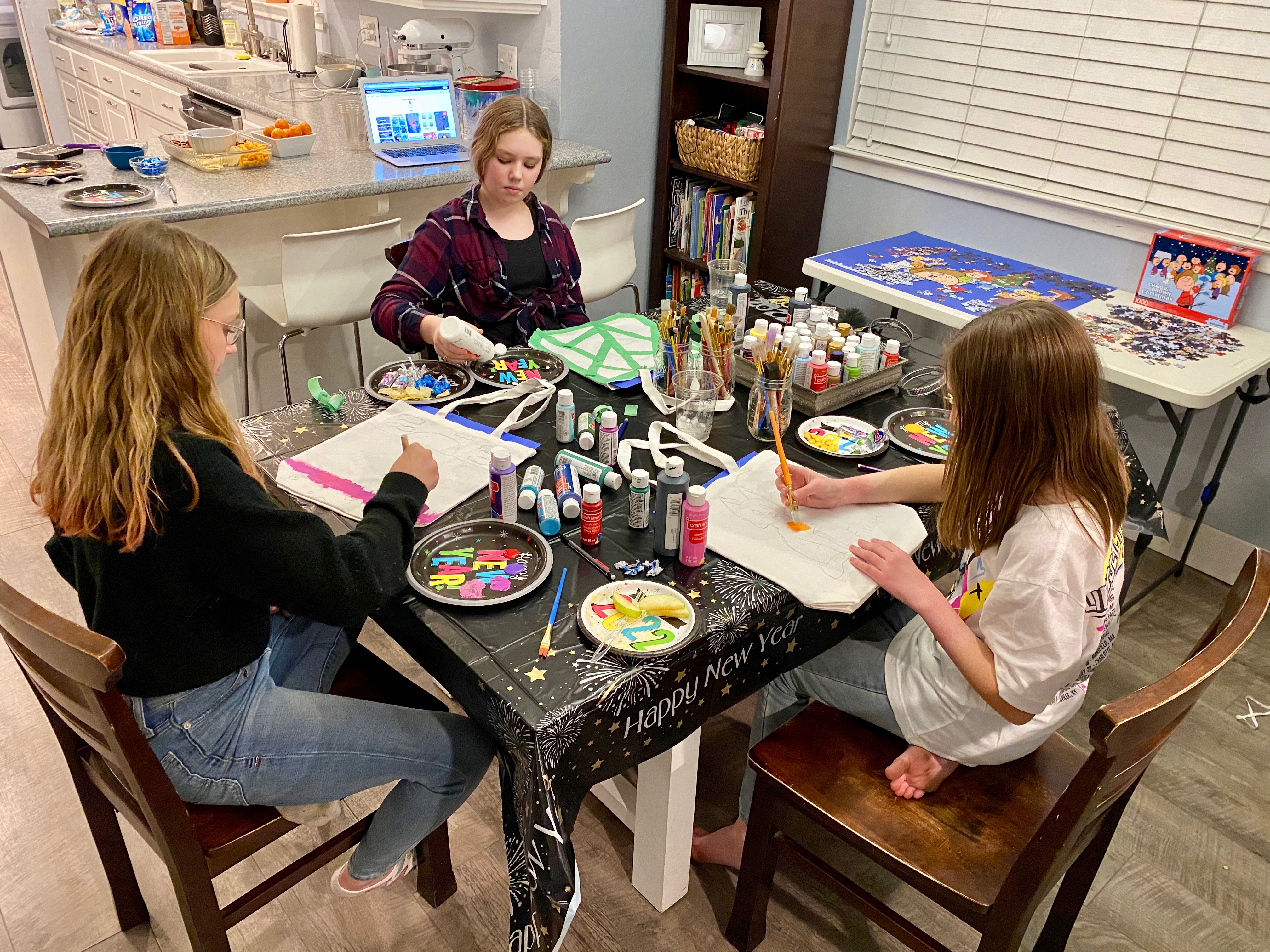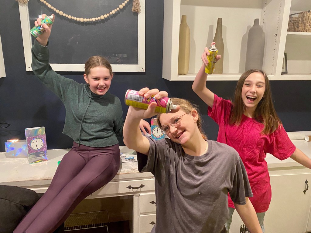 Our movie night was planned for 5:30 pm -8:30 pm, which seemed like enough time, but I think I would have extended by another 1/2 hour if I was to do it again. My daughter has the sweetest group of friends, and although it was loud with 15 middle schoolers running around my house, they were so respectful and everyone had SO MUCH FUN!!! We set up corn hole in the backyard and we have tether ball as well. For the first hour, the kids ran around outside, and the entire group greeted each person as they arrived. The Nightmare Before Christmas is only 1 hour and 16 minutes long, so it’s a great length for a movie night and left enough time for a game before everyone got picked up.